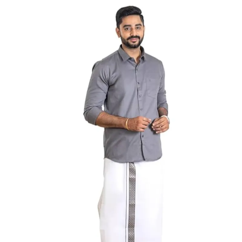 Ramraj Grey Men Dhoti combines comfort and style. Everyday essential available in large, medium, small.